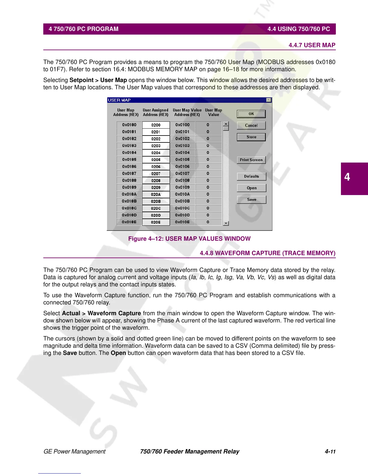 The 750/760 PC Program provides a means to program the 750/760 User Map (MODBUS addresses 0x0180