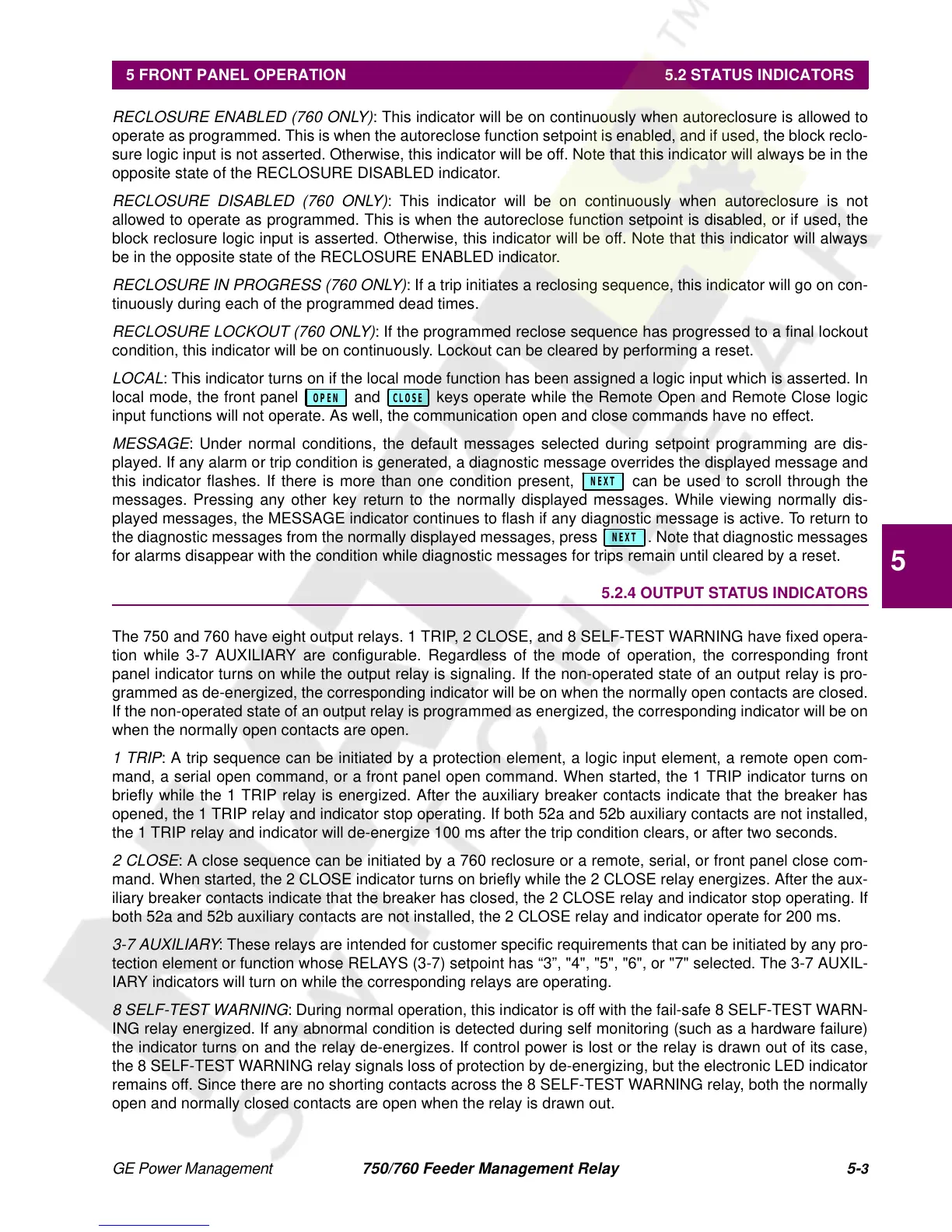 The 750 and 760 have eight output relays. 1 TRIP, 2 CLOSE, and 8 SELF-TEST WARNING have fixed opera-