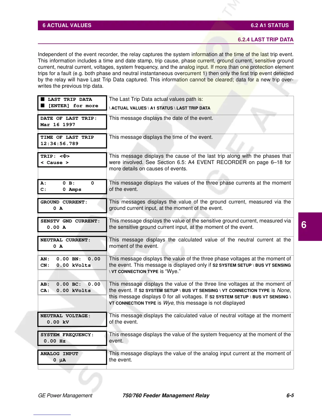 \ ACTUAL VALUES \ A1 STATUS \ LAST TRIP DATA