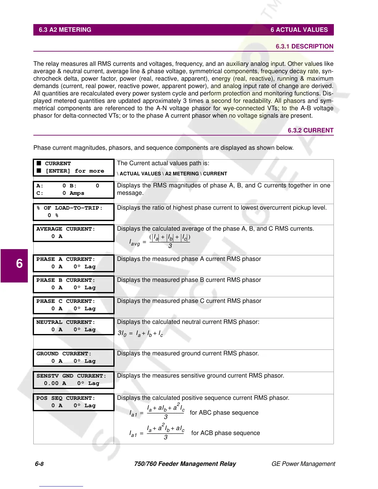 6.3 A2 METERING 6 ACTUAL VALUES