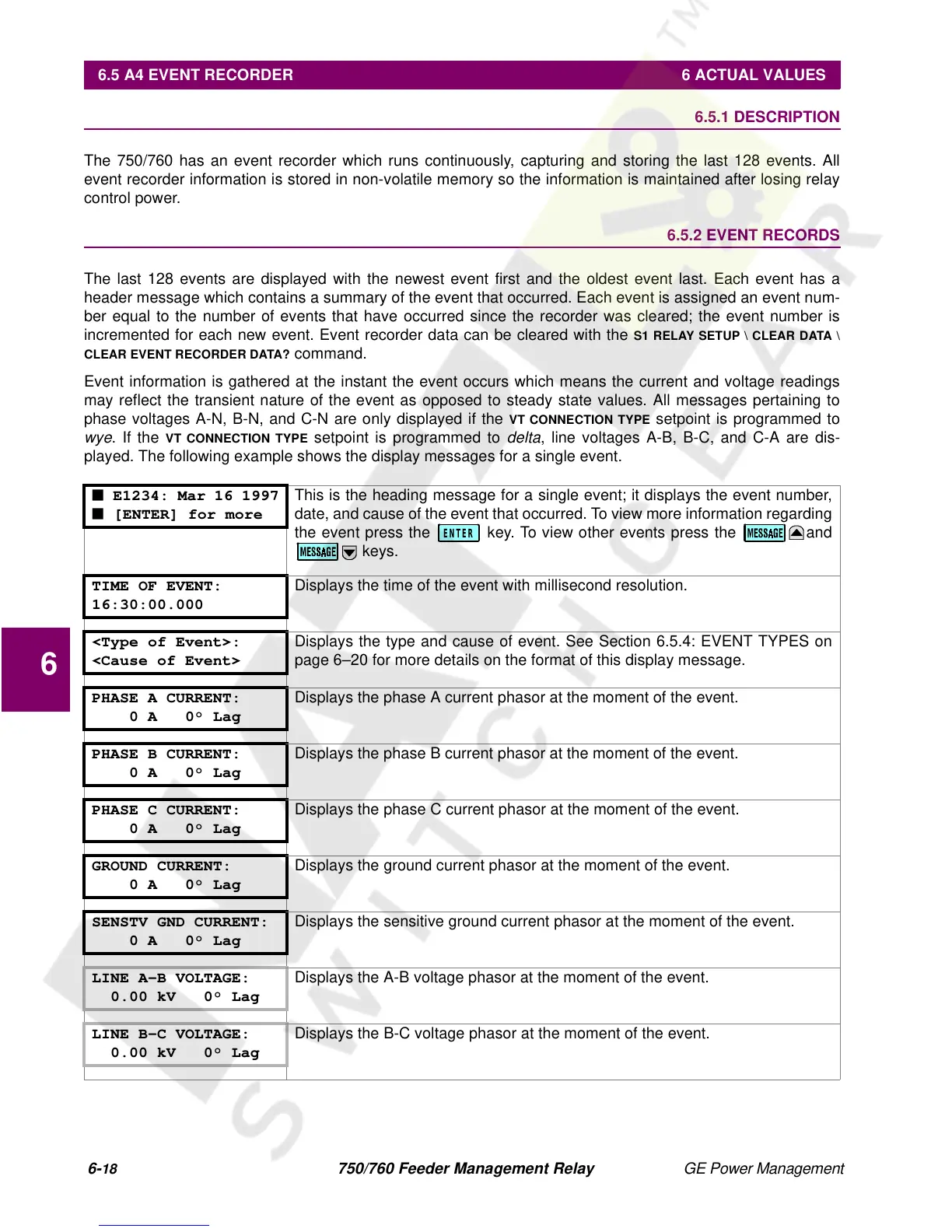 6.5 A4 EVENT RECORDER 6 ACTUAL VALUES