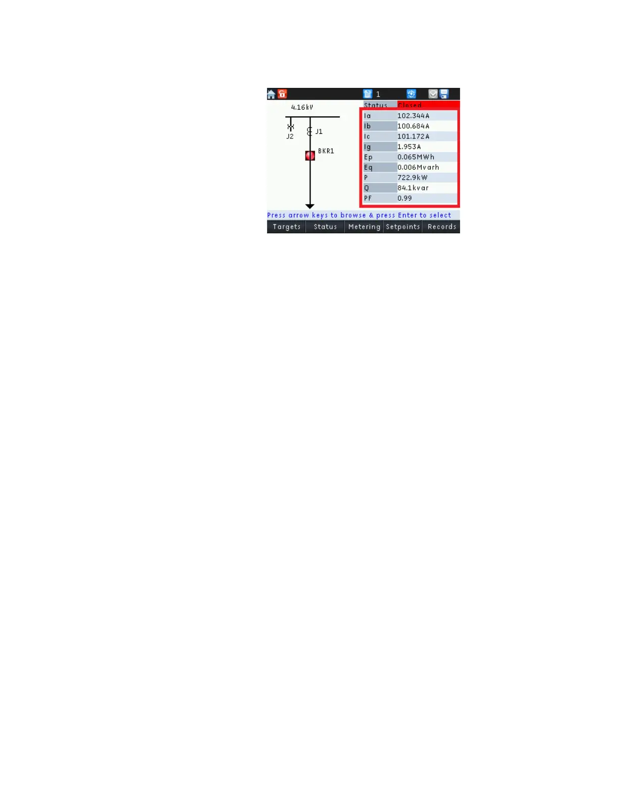 available breakers and switches by using the navigation keys. After navigation, selection