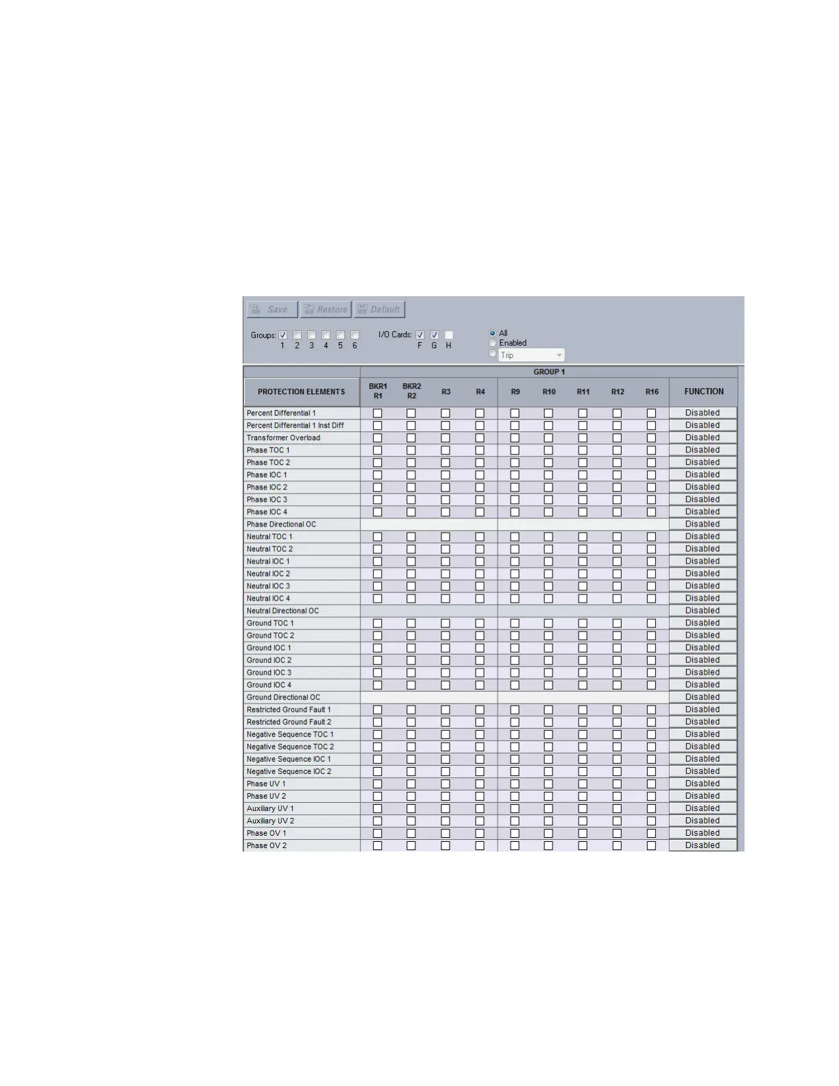 • view the output relay (R3, R4) assignments for the elements