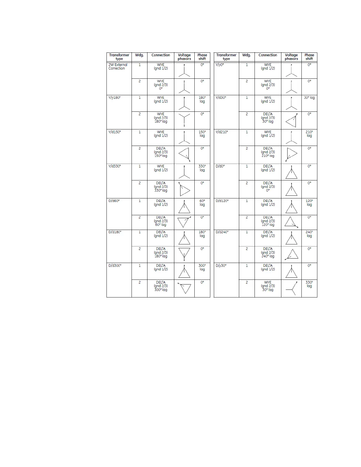 Figure 4-26: Two-winding transformer connections