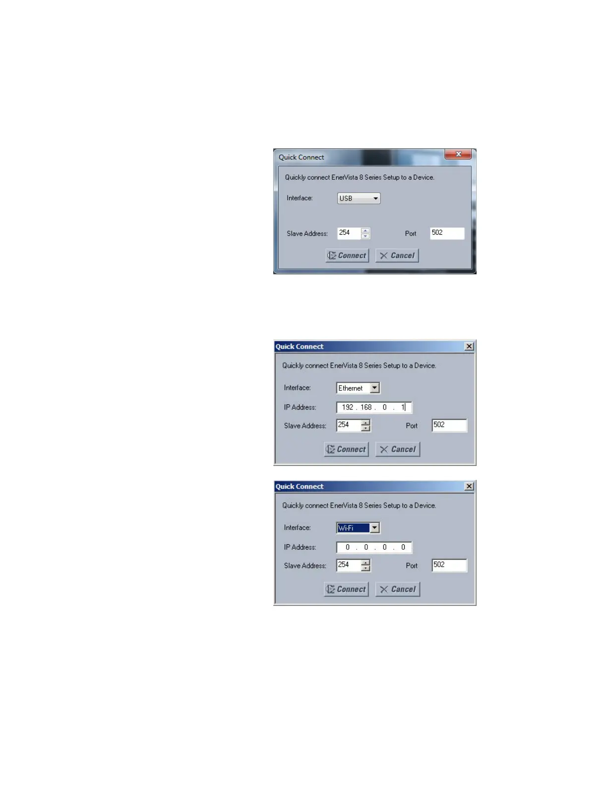 As indicated by the window, the "Quick Connect" feature can quickly connect the EnerVista