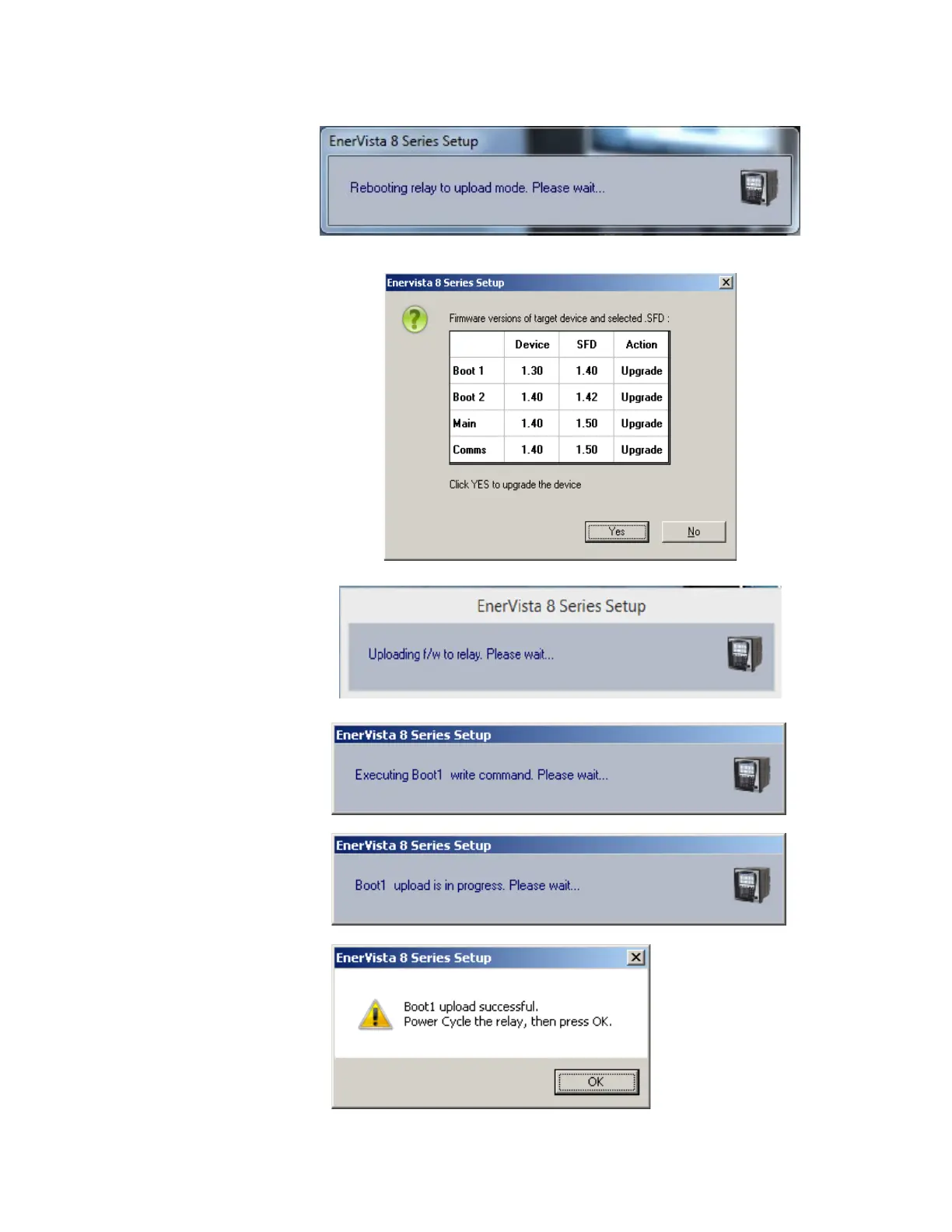 5. The following screen appears, click YES to proceed with the firmware loading process.