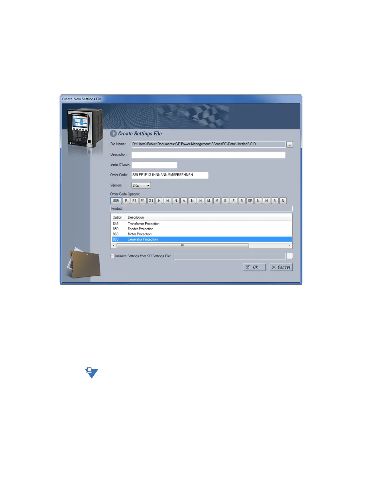 2. Select the Firmware Version, and Order Code options for the new setpoint file.