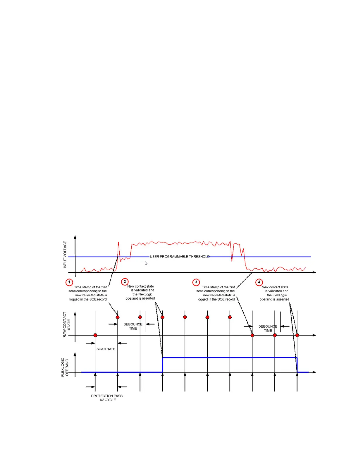 Figure 4-27: Contact Input Debouncing Mechanism and Time-stamping Sample Timing