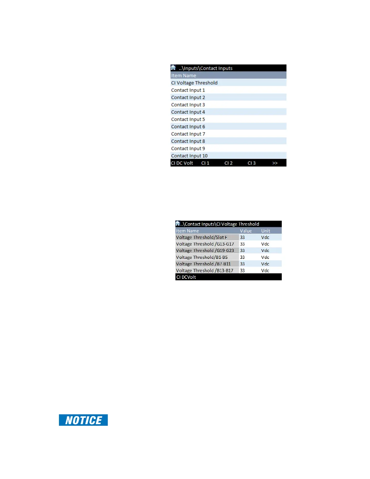 Path: Setpoints > Inputs > Contact Inputs > CI Voltage Threshold