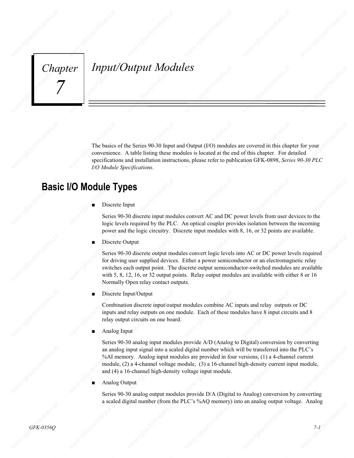 The basics of the Series 90-30 Input and Output (I/O) modules are covered in this chapter for your