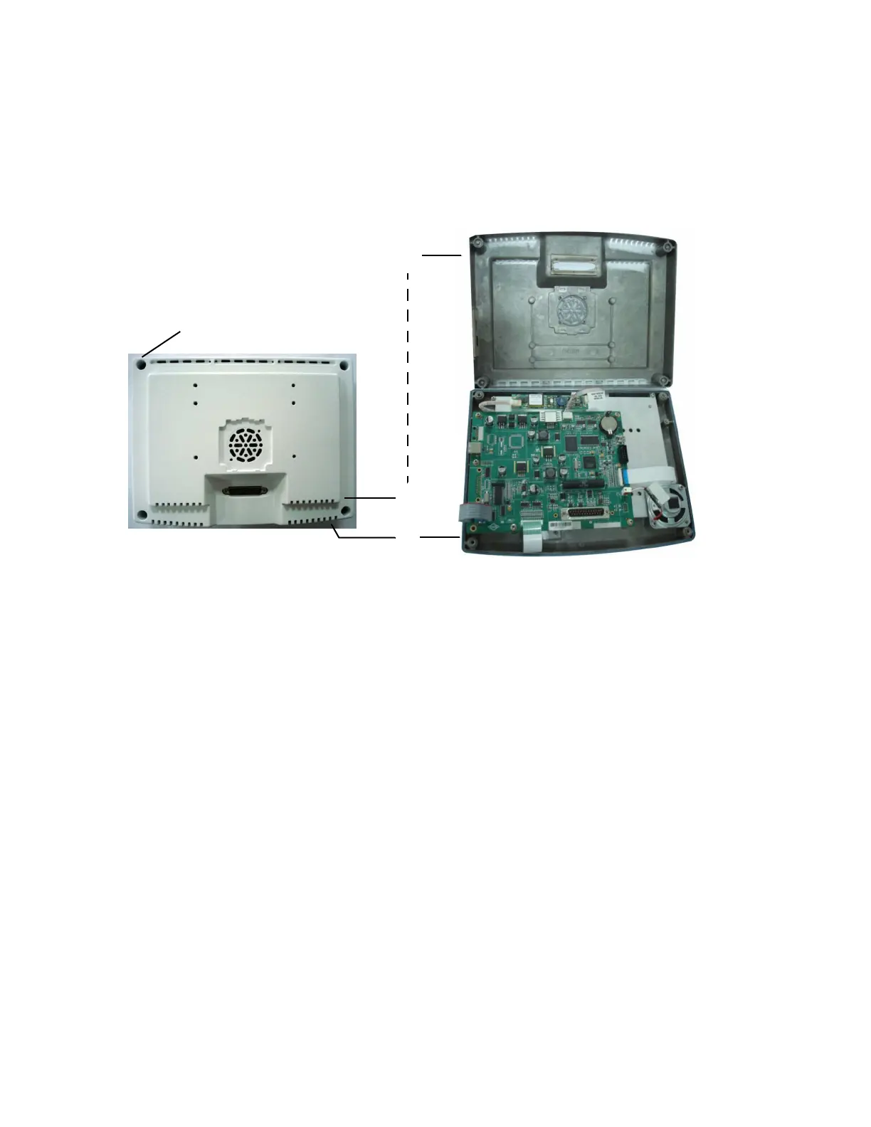 2. Loosen the screws (C) that hold the two enclosures together (one