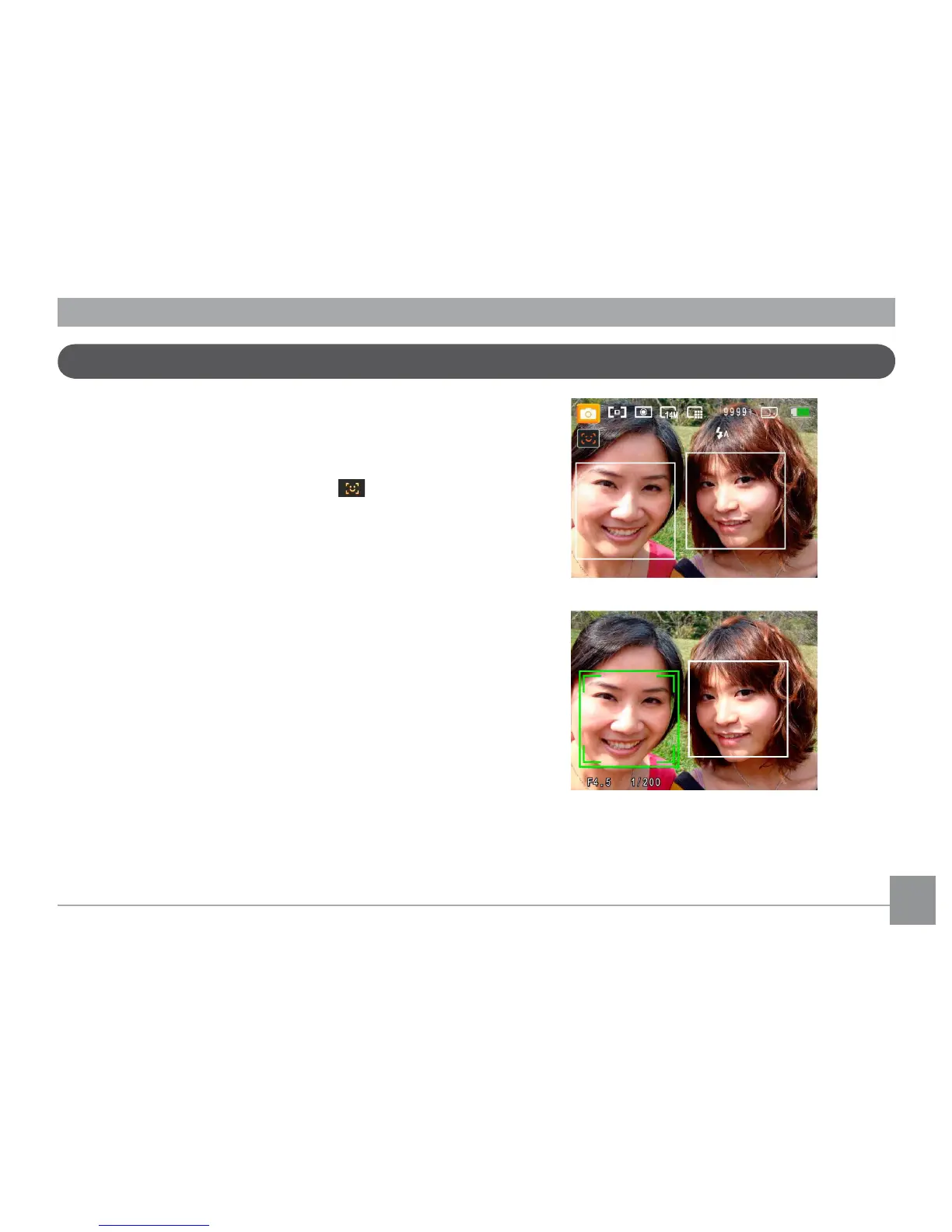 camera detects a face, a white rectangular frame will be