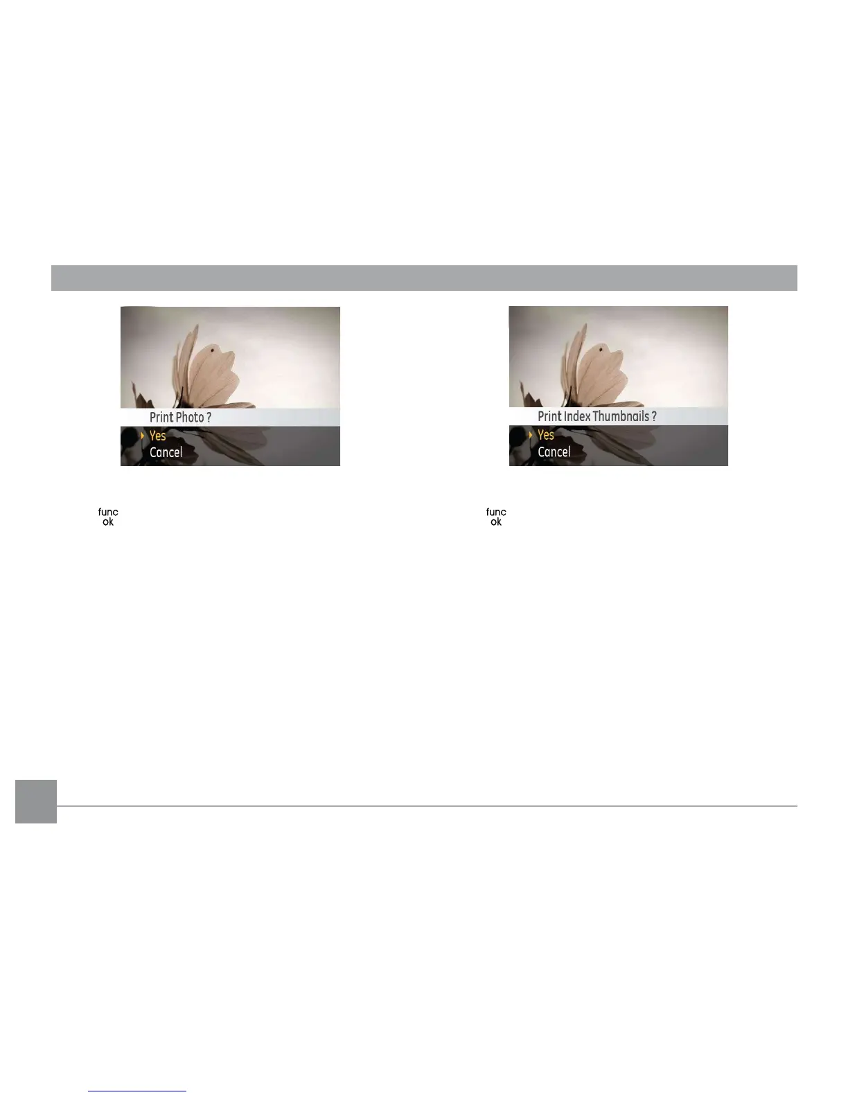 2. Select Yes to conrm the printing, or Cancel. Then press