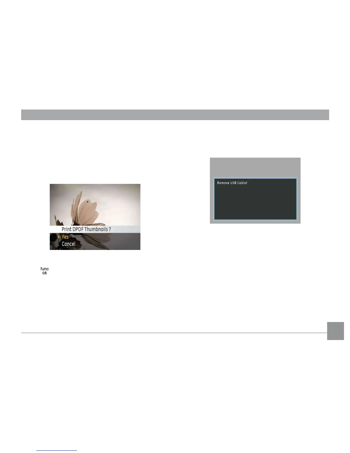 To exit the PictBridge menu, select Exit. The “Remove USB