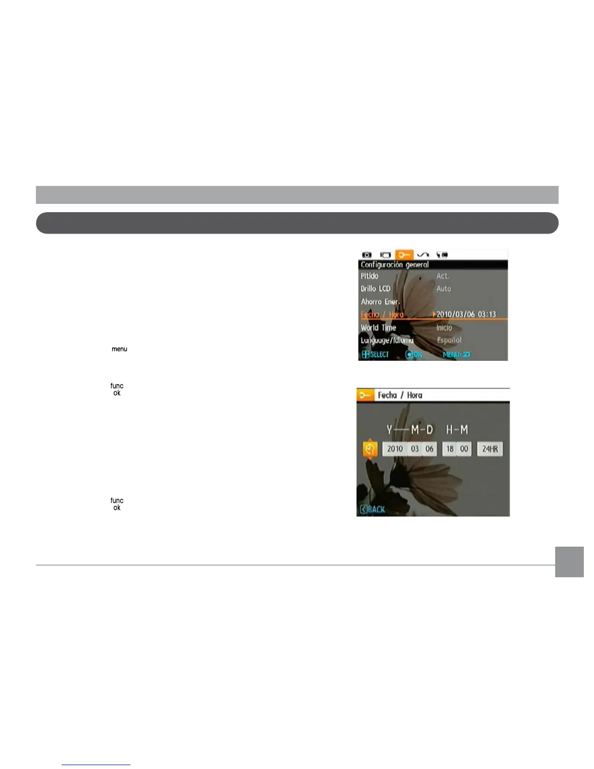 1. Use el botón Arriba/Abajo para seleccionar Fecha / Hora