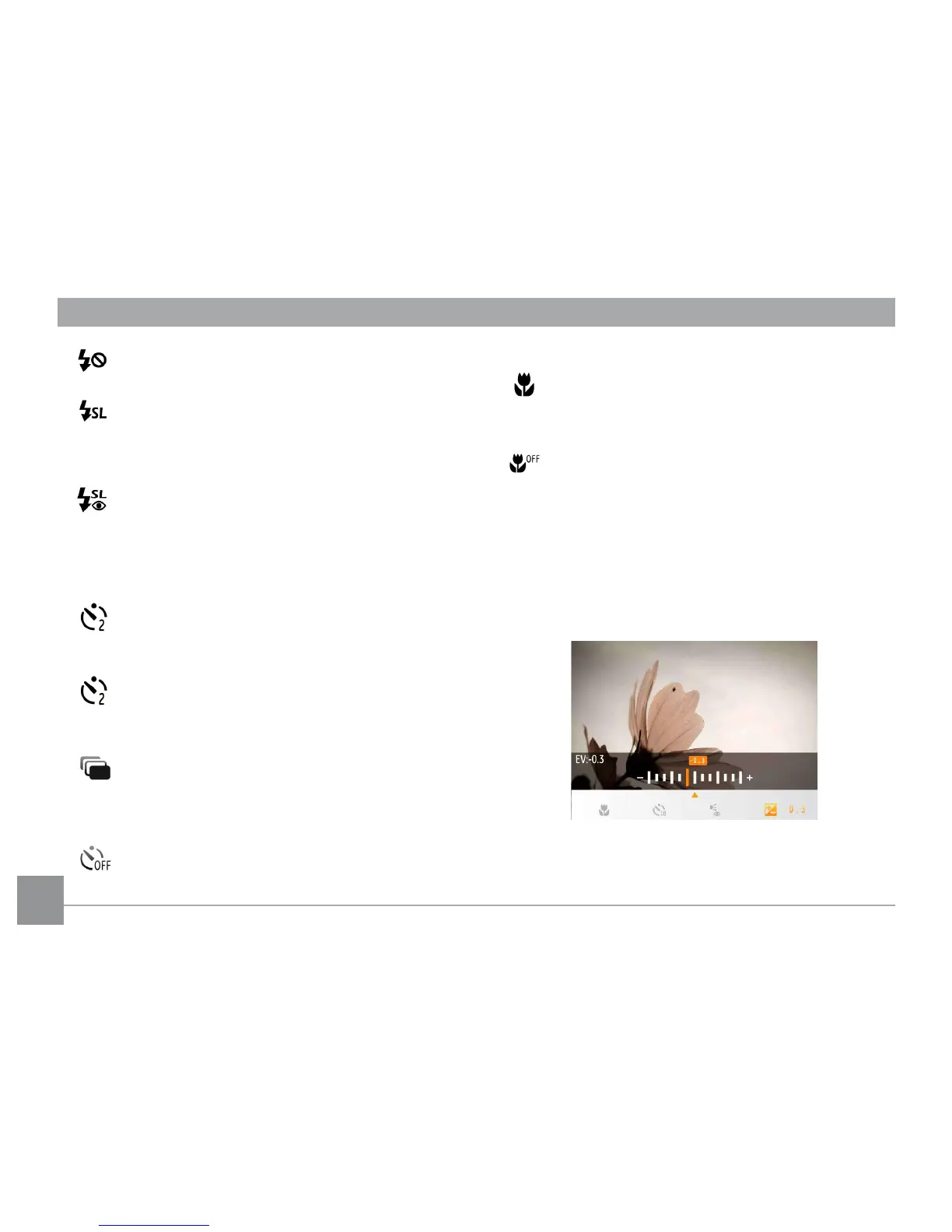 El rango de valor de exposición ajustable es de -2,0 EV a