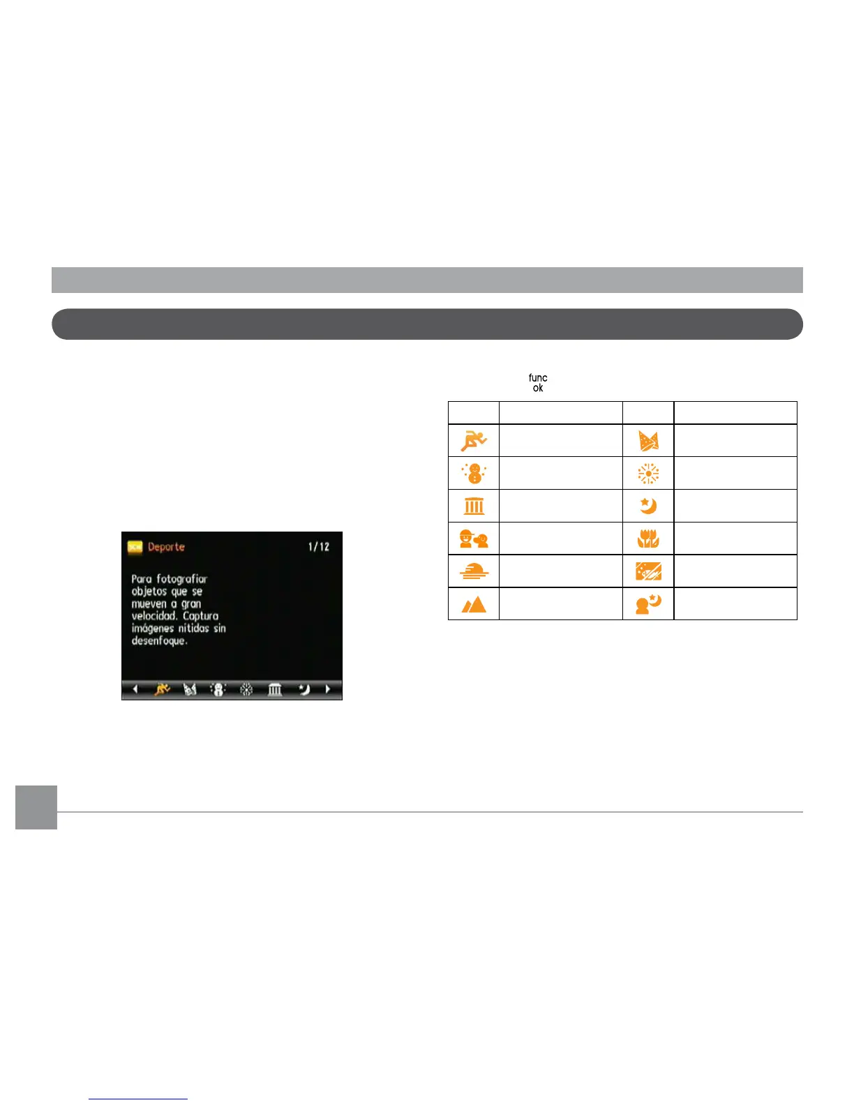 En el modo Escena, puede seleccionar entre un total de 12