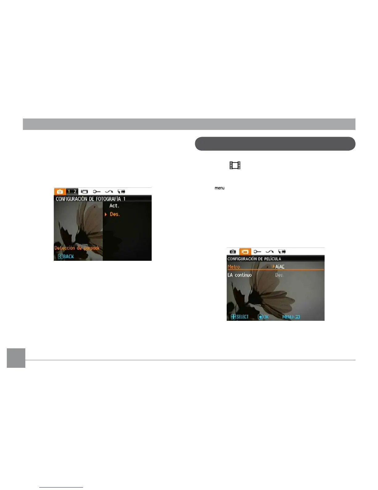 los menús Conguración de película o Conguración de