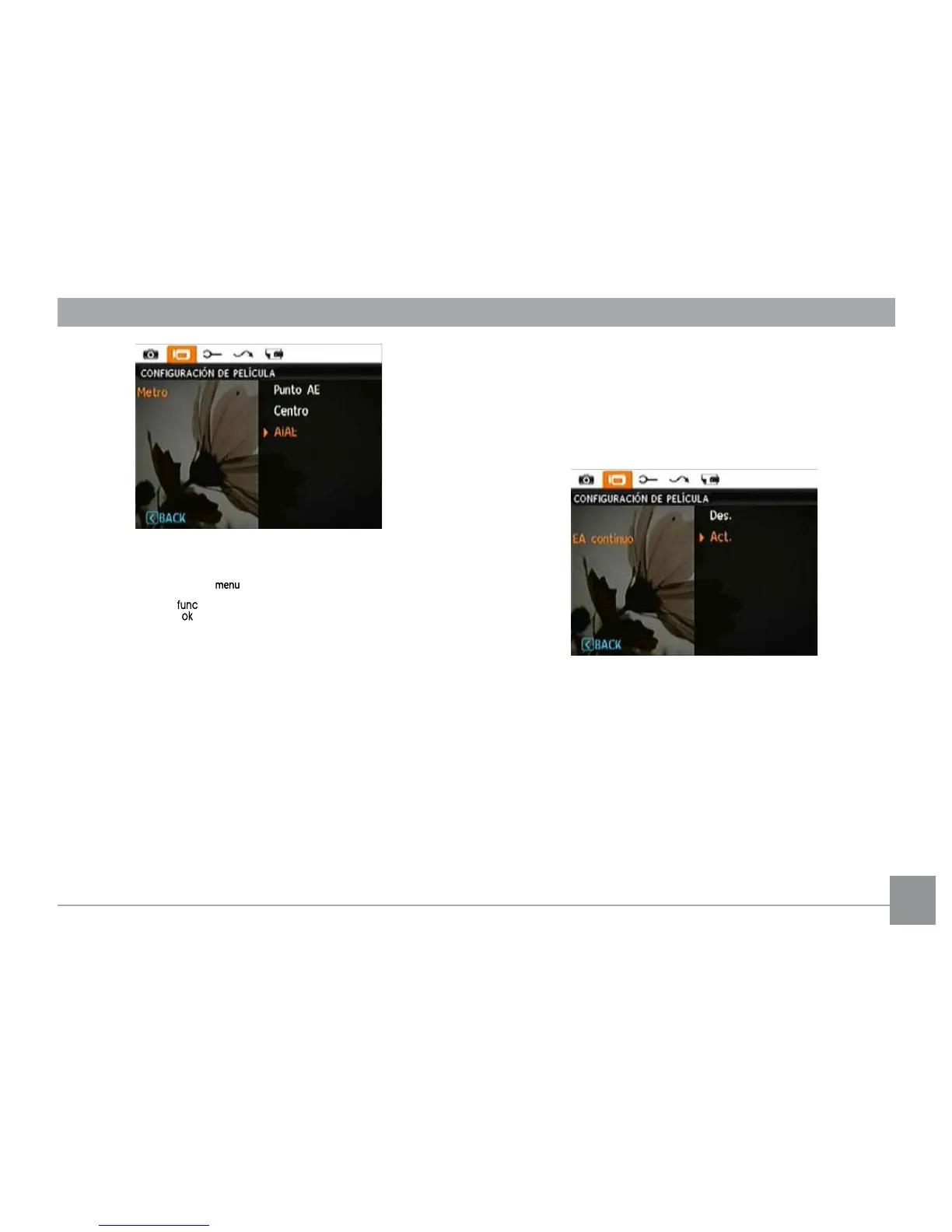 Si la función EA continuo está activada, la cámara ajustará