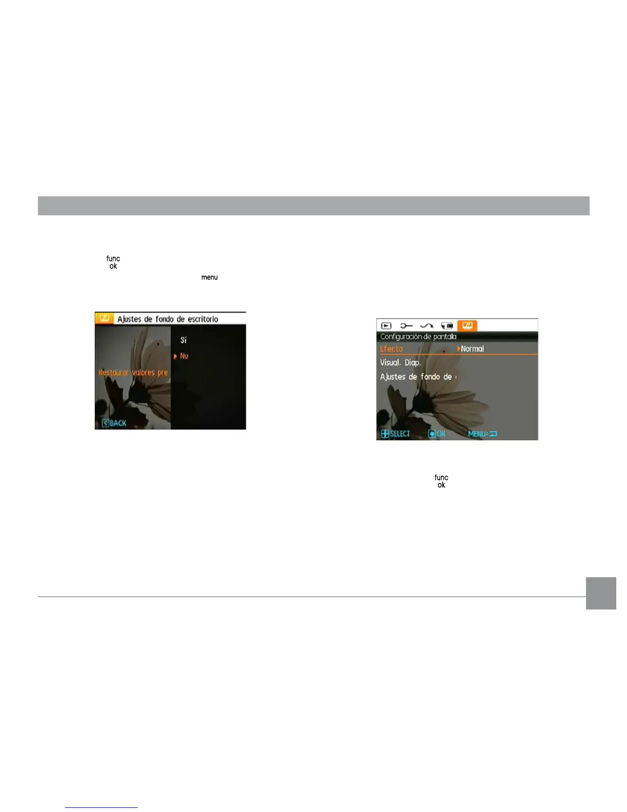 cámara entrará en la pantalla de ajuste de Playing Eect.