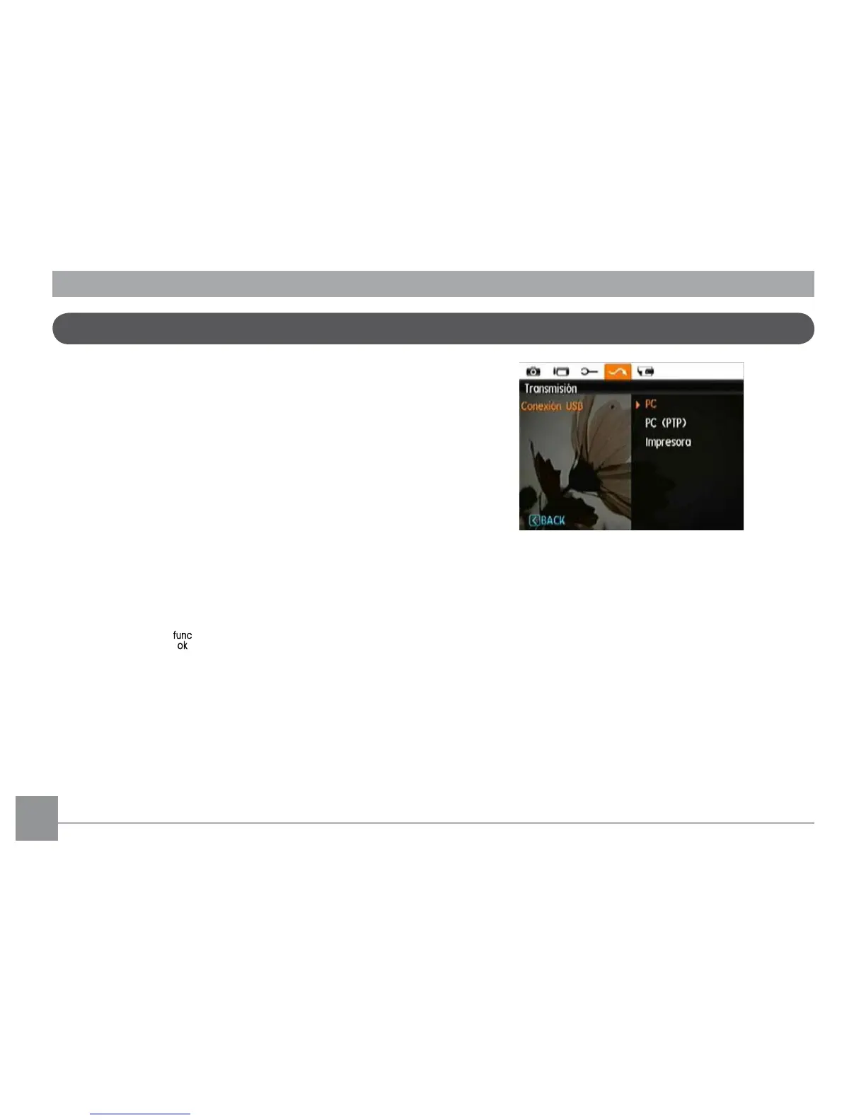 la conexión USB utilizando el botón Arriba/Abajo y, a