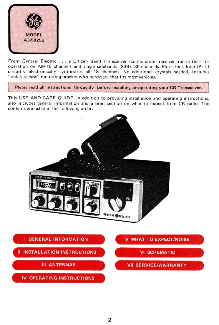 From General Electric . . . a Citizen Band Transceiver (combination receiver-transmitter) for