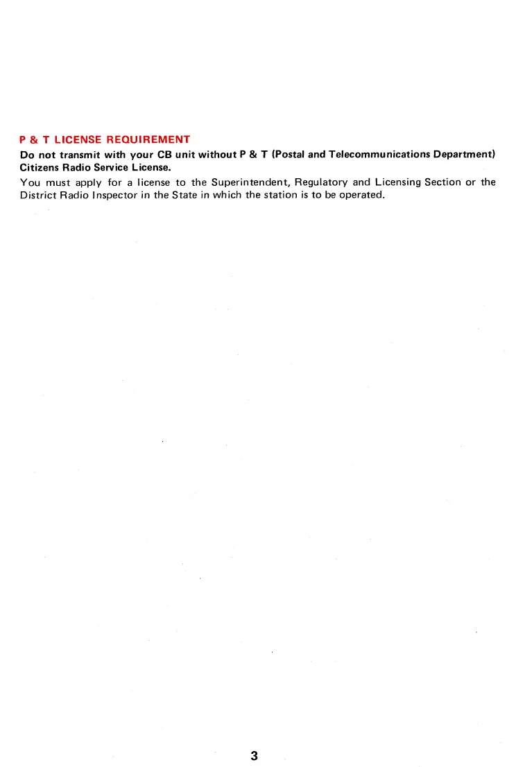 Do not transmit with your CB unit without P & T (Postal and Telecommunications Department)