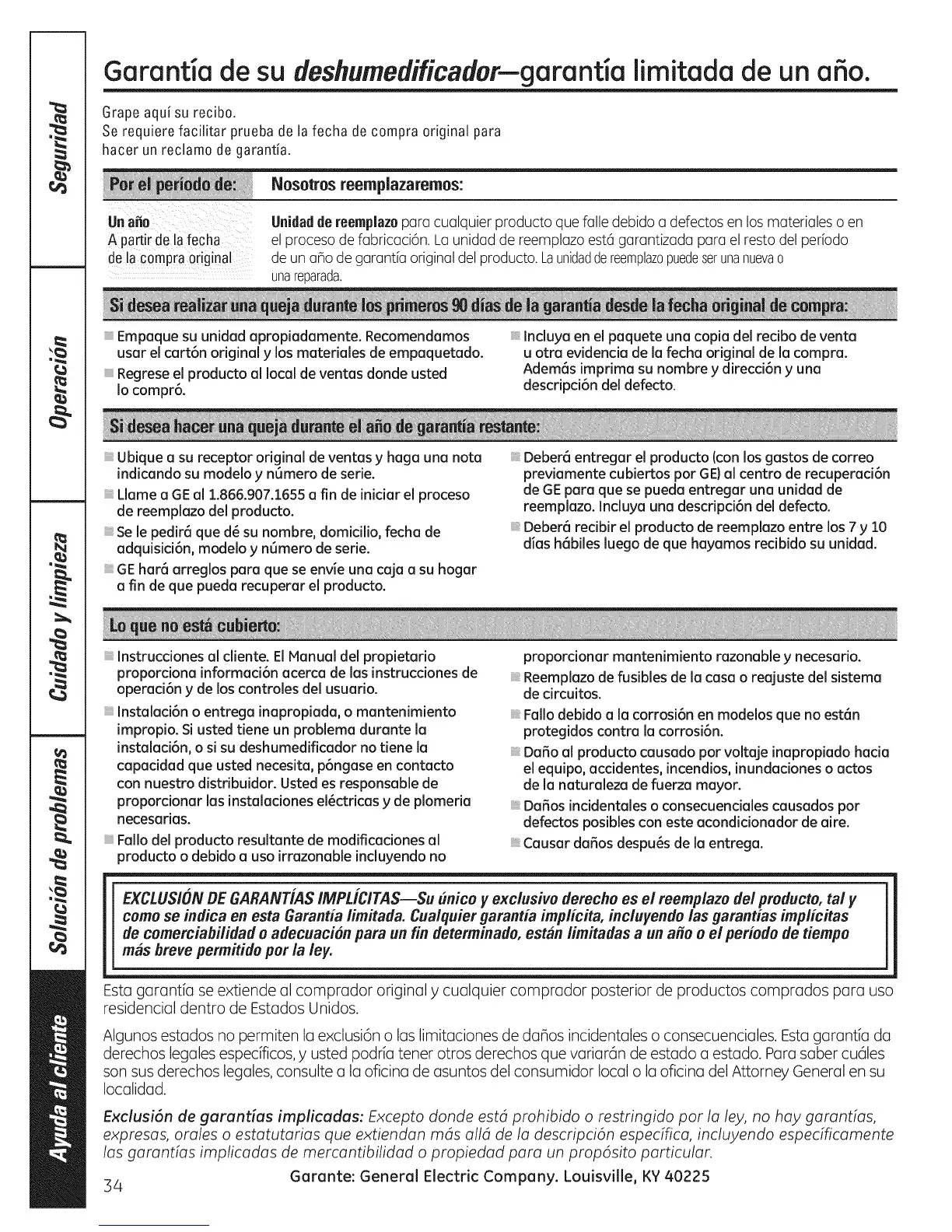 Garantia de su deshumedificader--garantialimitada de un a o.