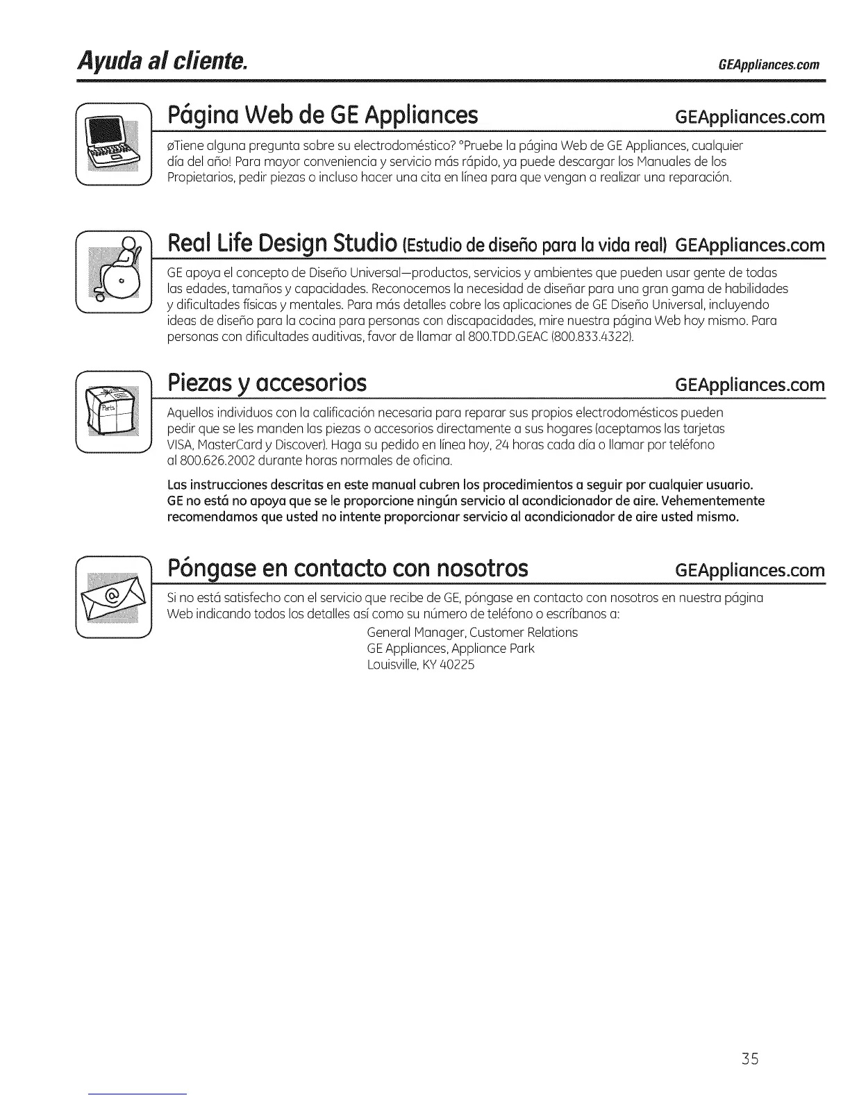 P6ngase en contacto con nosotros GEAppliances.com