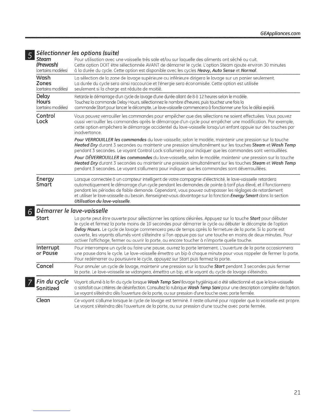 Interrupt Pour interrompre un cycle ou faire une pause, ouvrez la porte lentement. L'ouverture de la porte occasionnera
