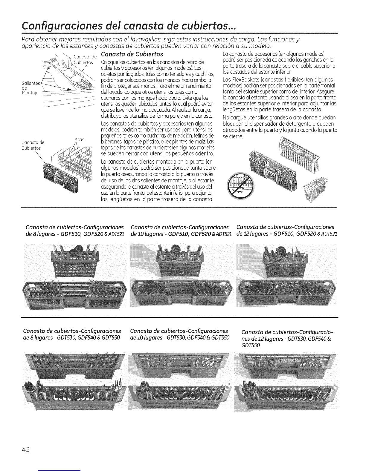 apariencia de los estant:es y canast:as de cubiert:os pueden variar con rdaci6n a su moddo.