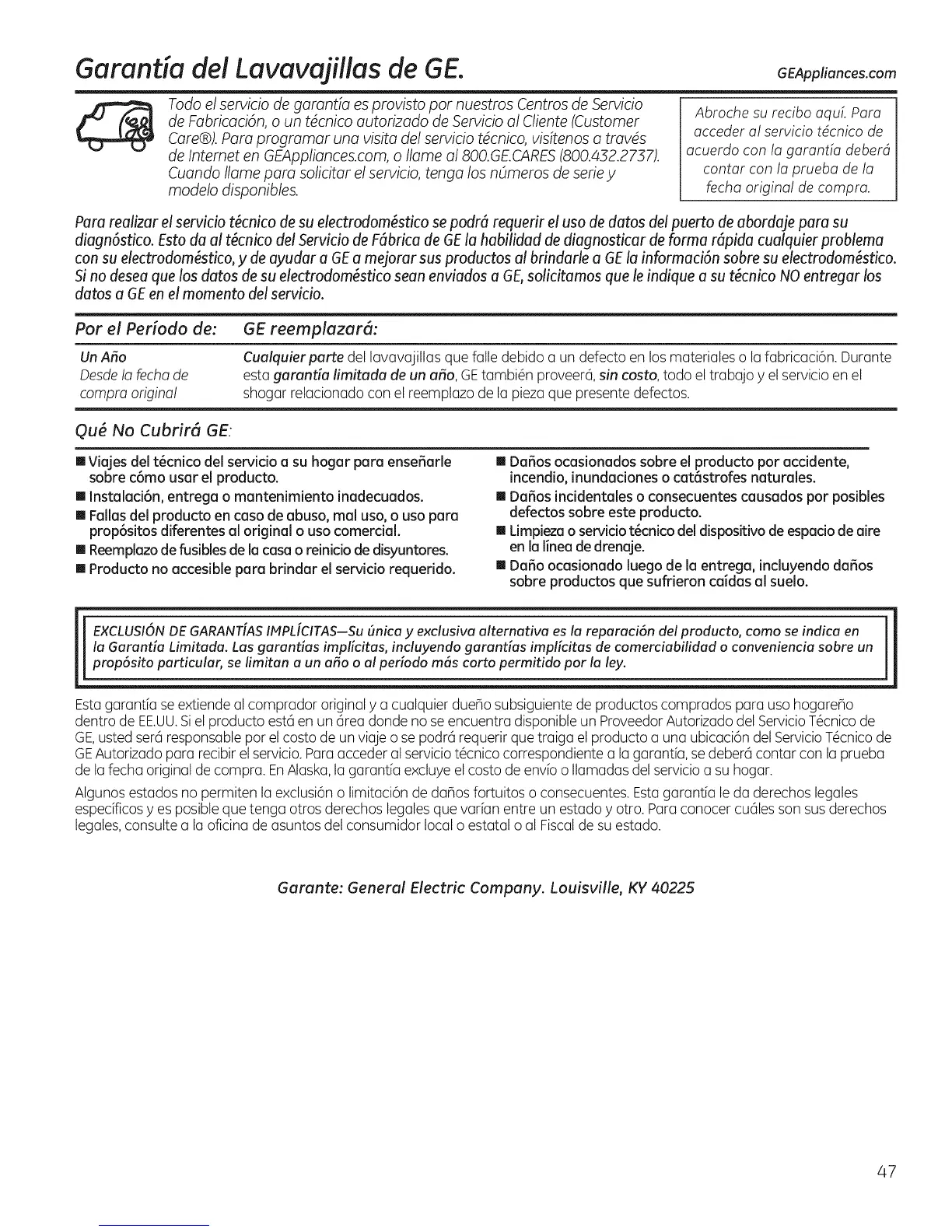 Garanda dd Lavavajillas de GE. GEAppliances.com