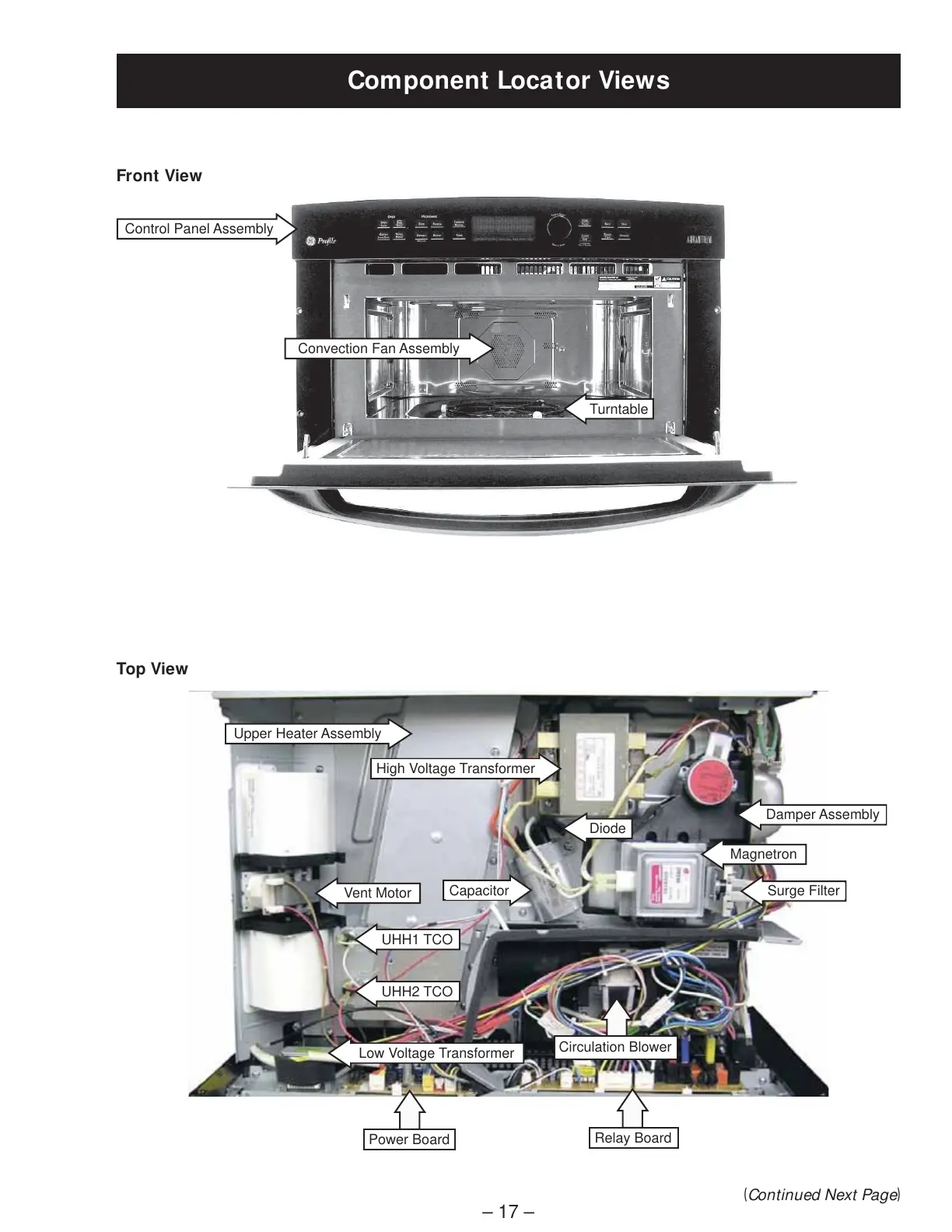 GE Advantium 240 - Component Identification and Access; Component Locator Views