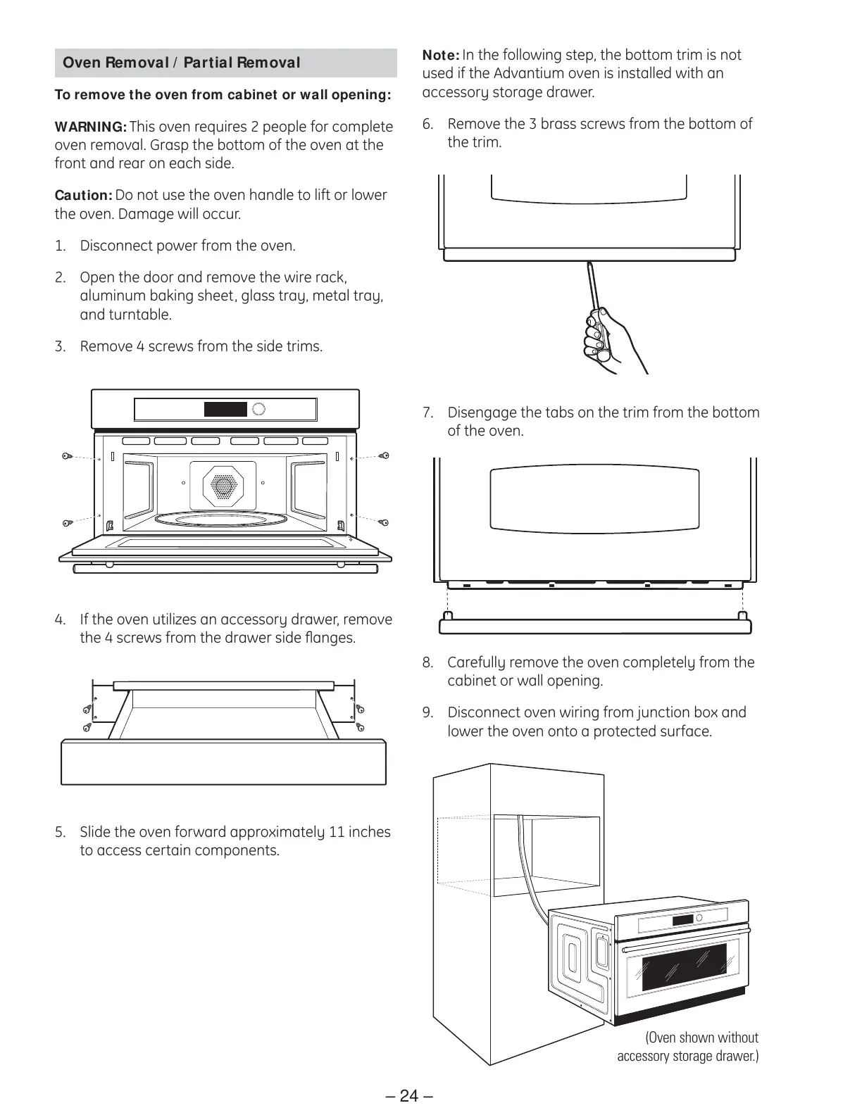 4. If the oven utilizes an accessory drawer, remove