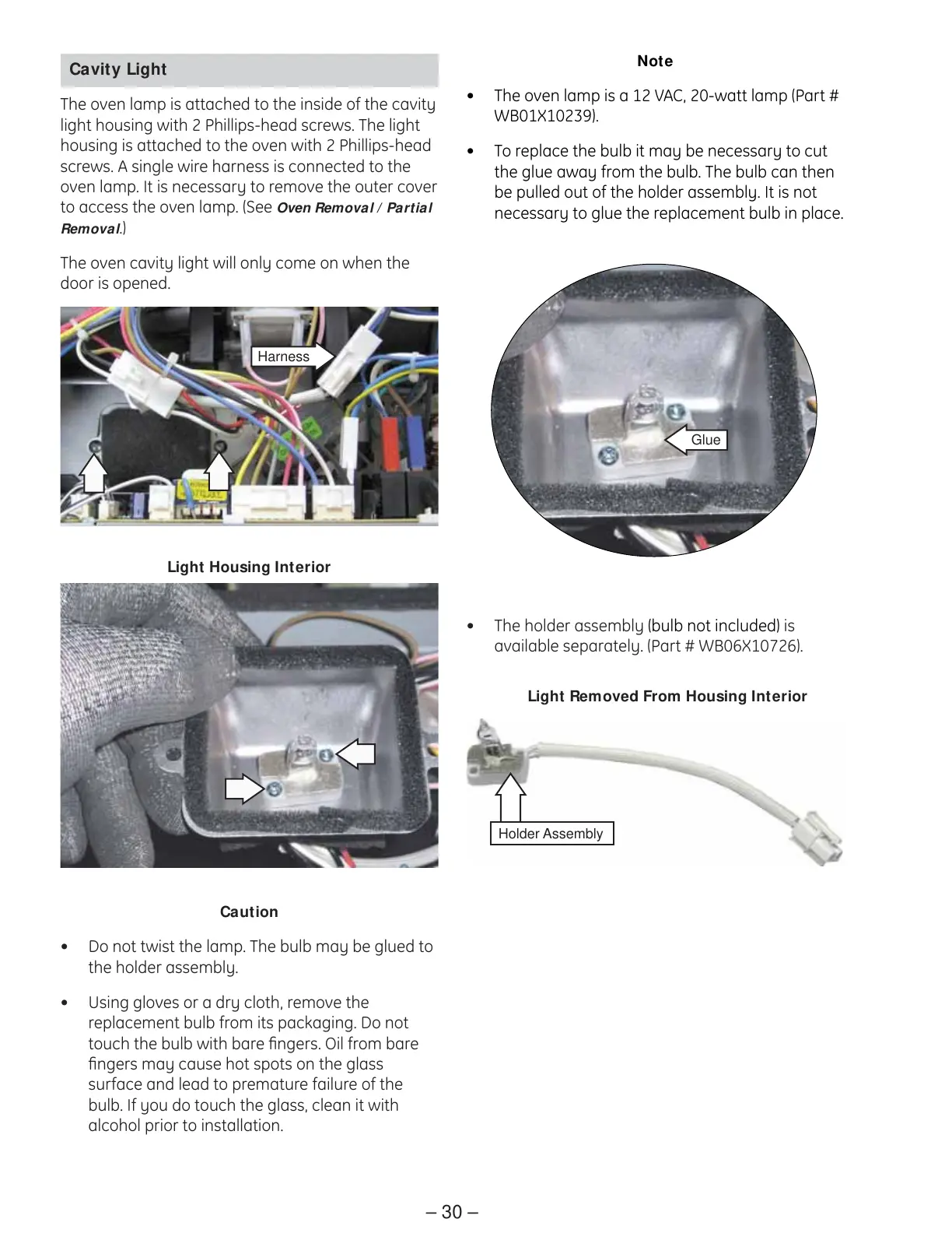 The oven lamp is a 12 VAC, 20-watt lamp (Part # •