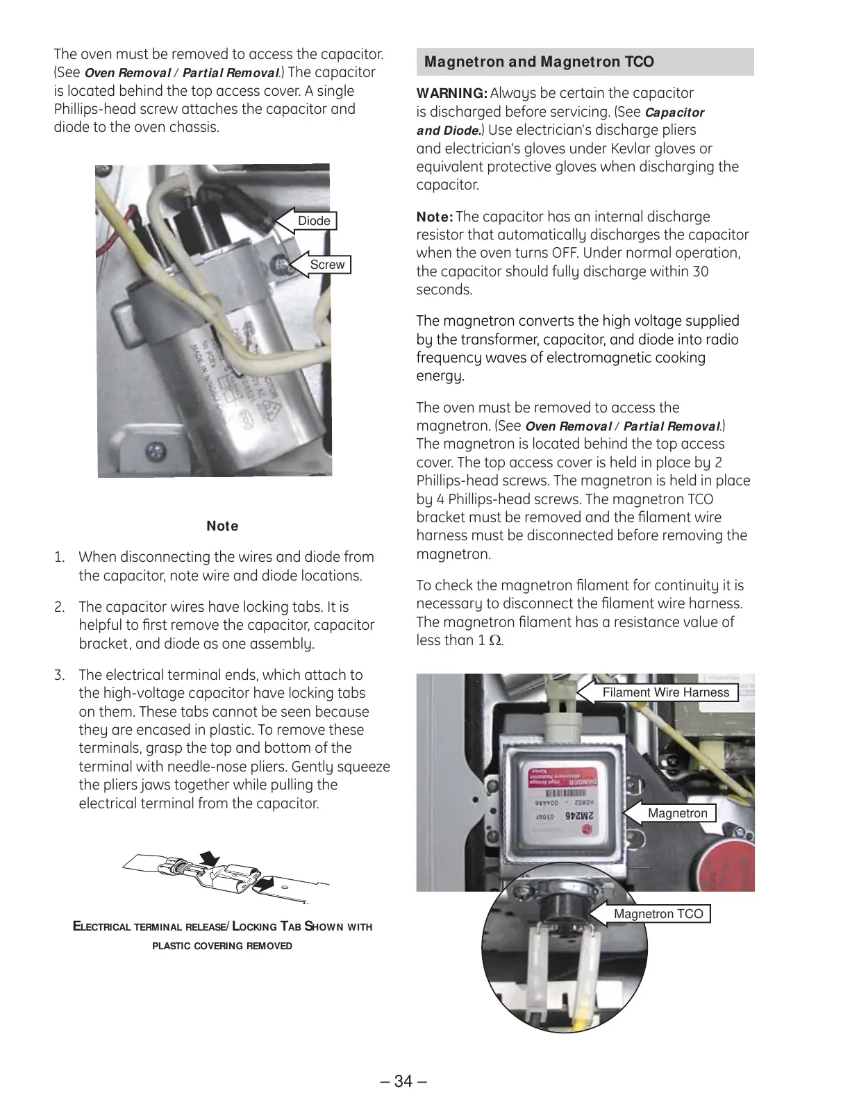 (See Oven Removal / Partial Removal.) The capacitor