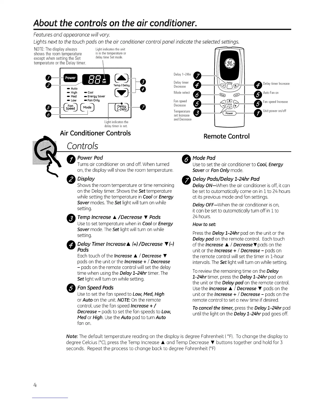 Pressthe Delay 1-24hr pad on the unit or the
