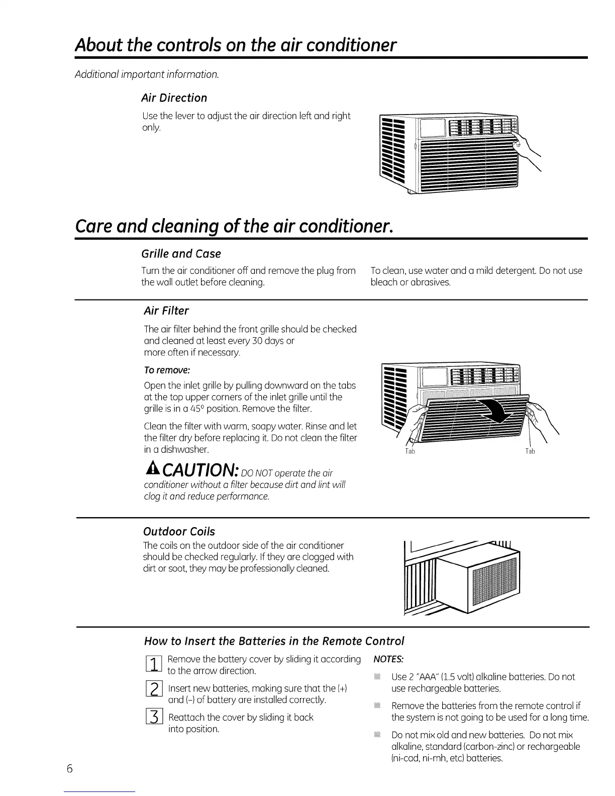 Turn the air conditioner off and remove the plug from To clean, usewater and a mild detergent. Do not use