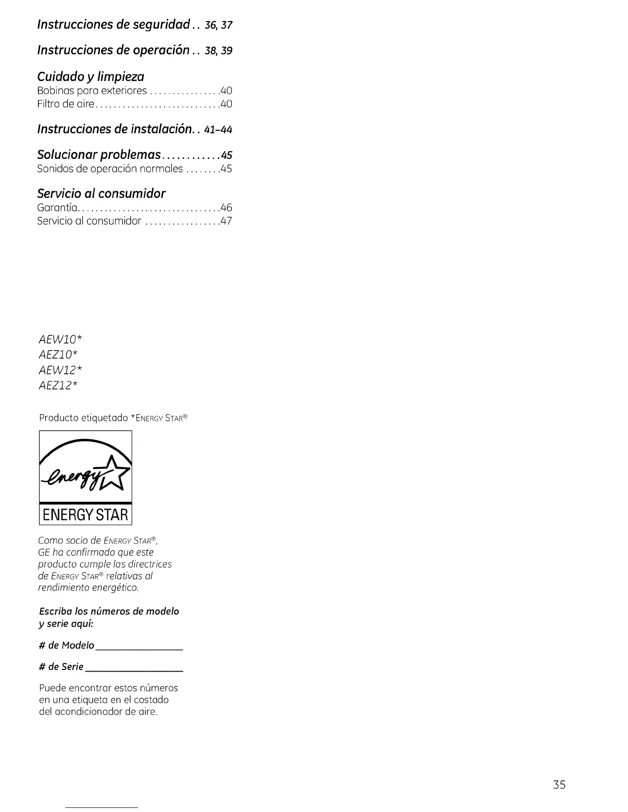 Servicio al consumidor ................. 47
