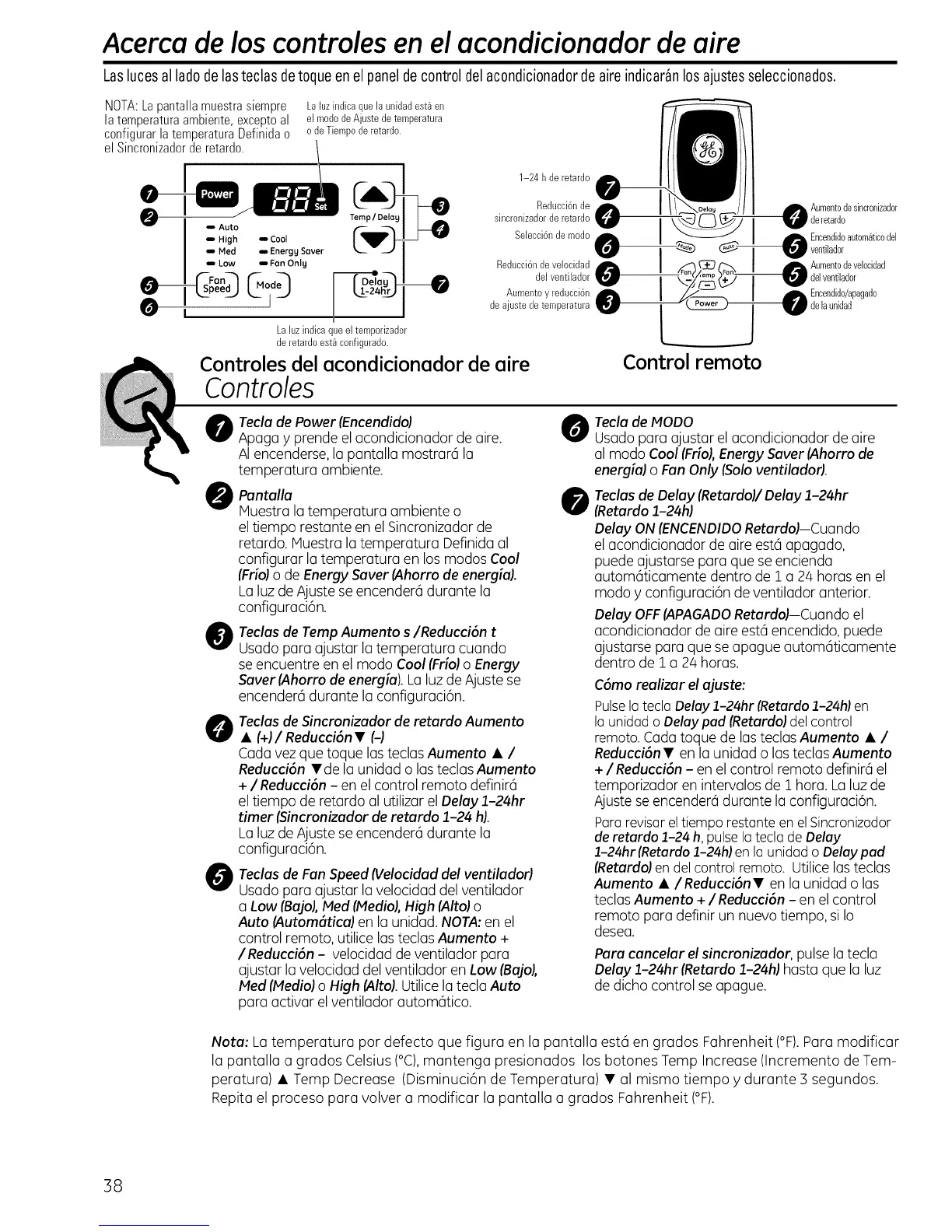 Nota: La temperatura par defecto que figura en la pantalla est6 en grados Fahrenheit (°F).Para modificar