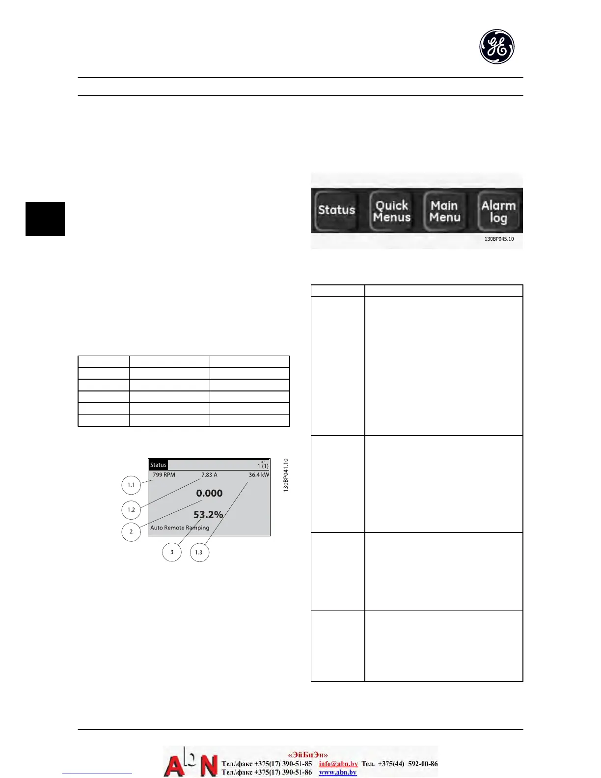 Status Shows operational information.