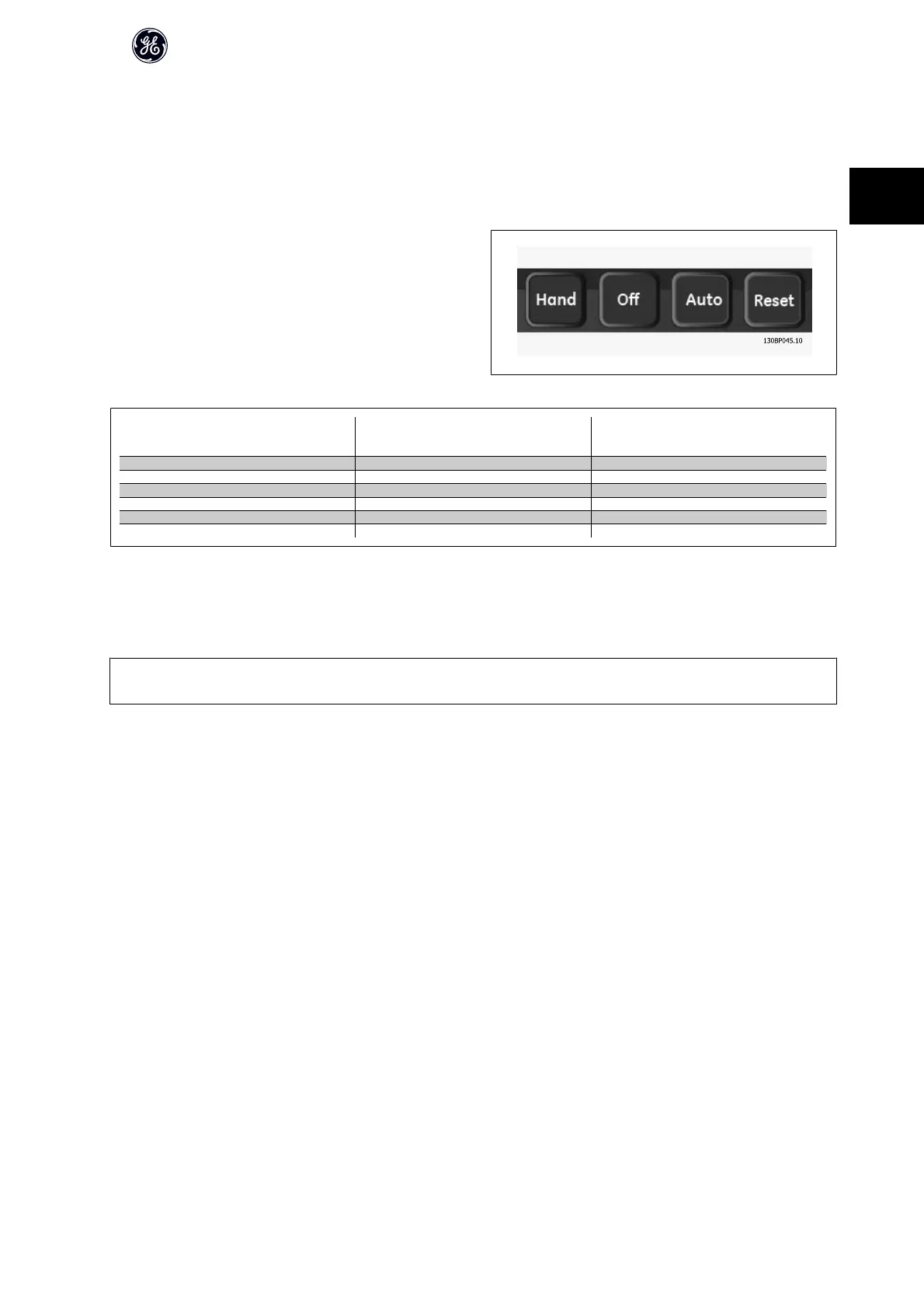 possible to start and stop the frequency converter bykeypad using the [Hand] and [Off] keys. Alarms can be reset via the [RESET] key. After pressing the [Hand]