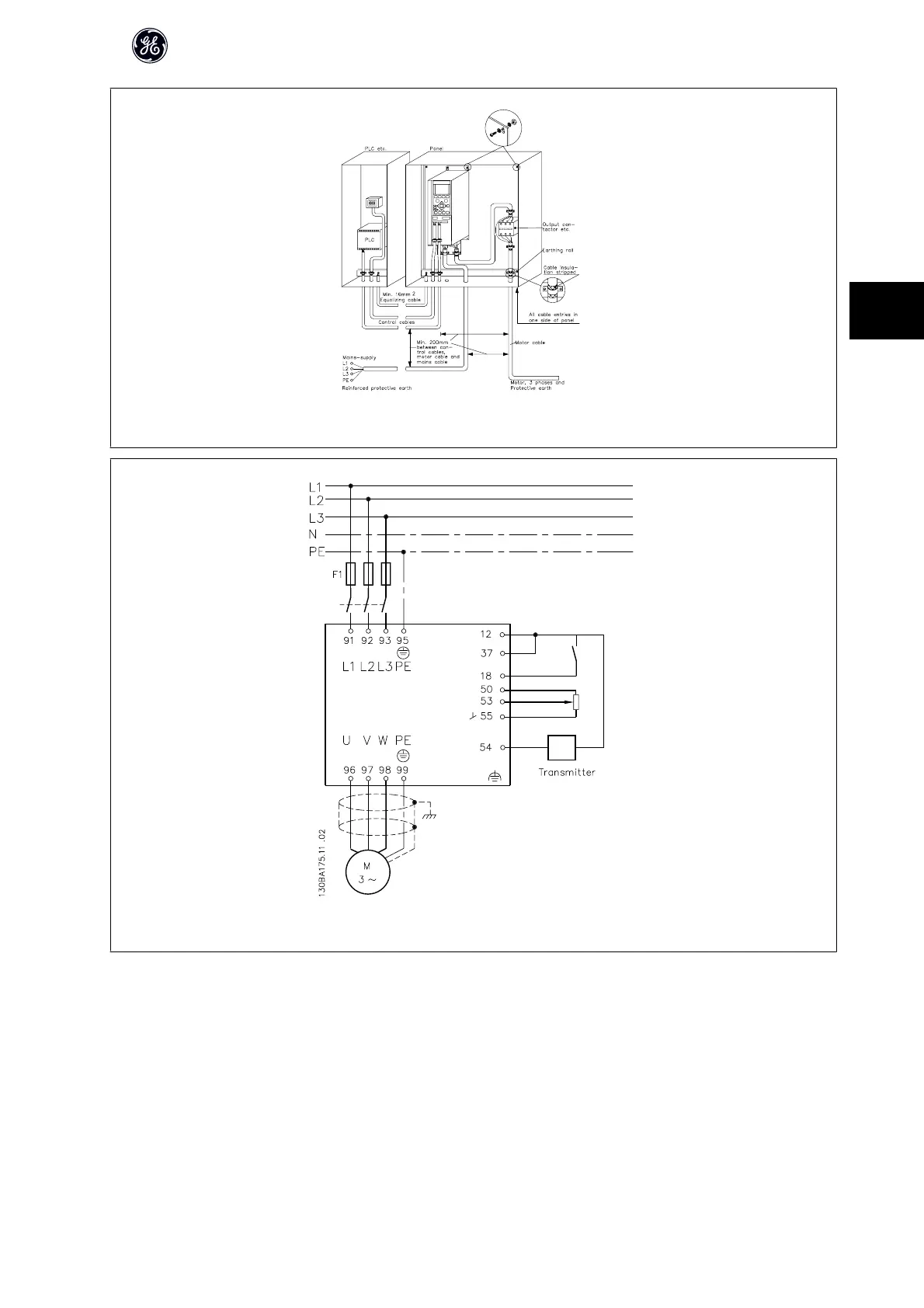 Illustration 4.21: EMC-correct electrical installation of a frequency converter in cabinet.