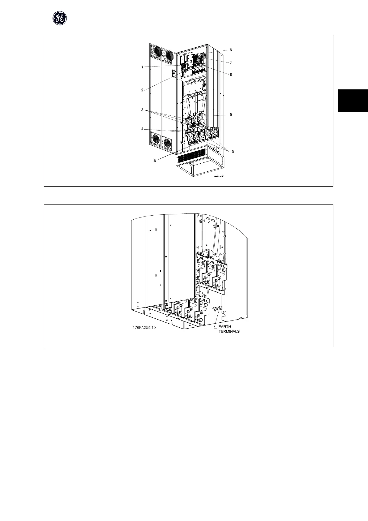 Illustration 3.9: Position of earth terminals IP00 (Chassis), Unit Size 52