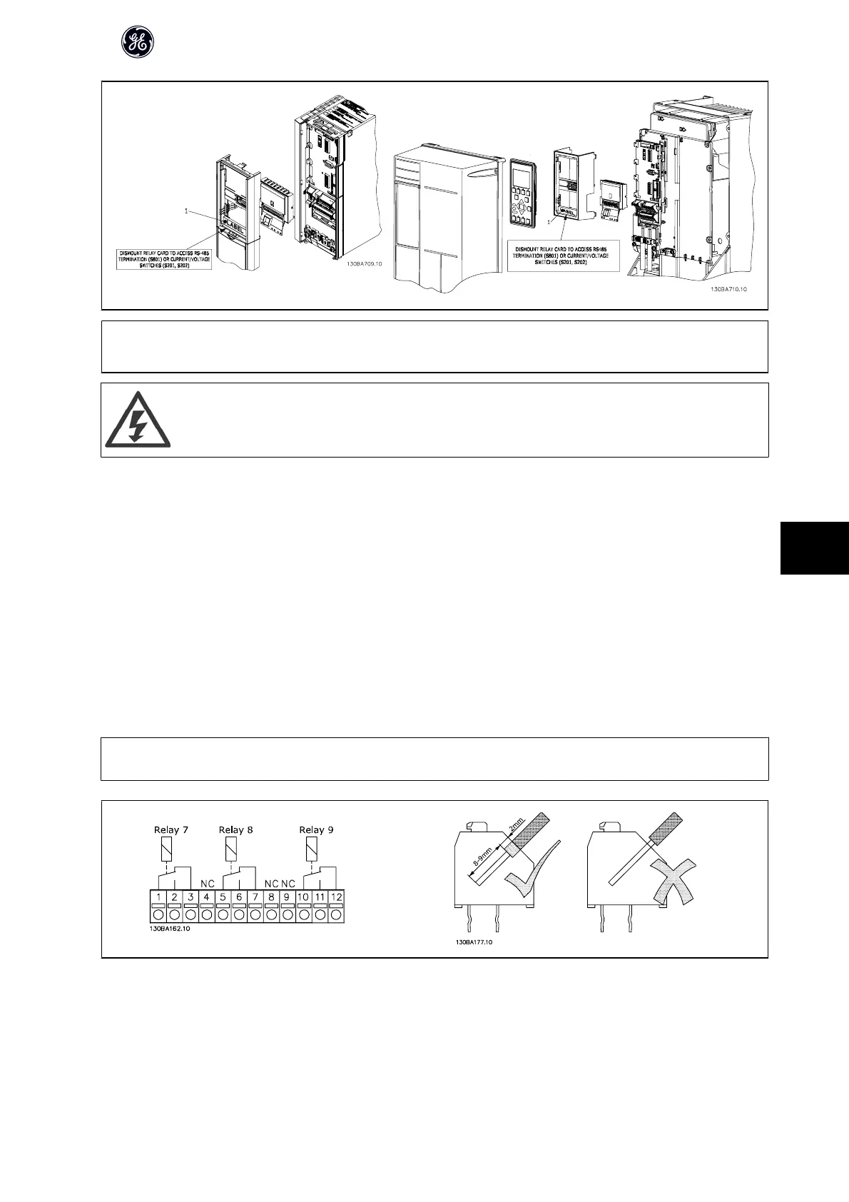 • Select the relay functions in par. E-24 Function Relay [6-8], par. E-26 On Delay, Relay [6-8] and par. E-27 Off Delay, Relay [6-8].