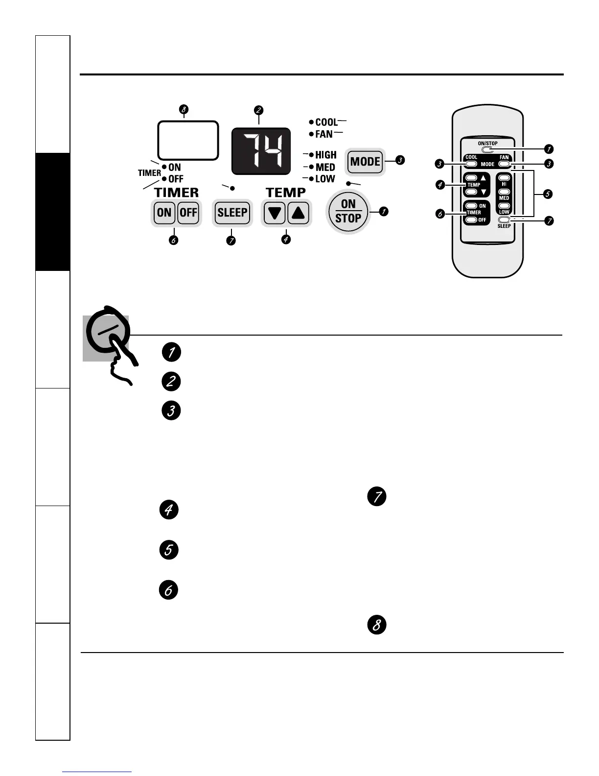 COOL or FAN mode at HIGH, MED or LOW
