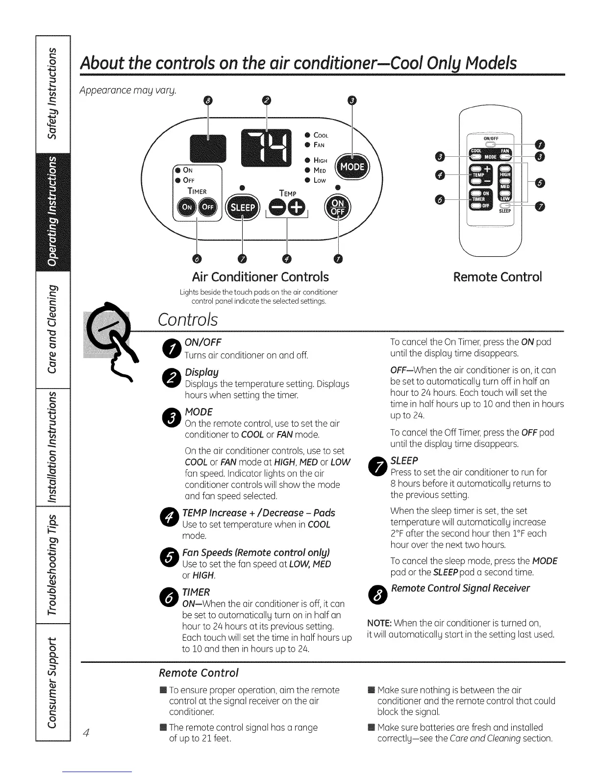 About the controlson the air conditioner-CoolOnlg Models