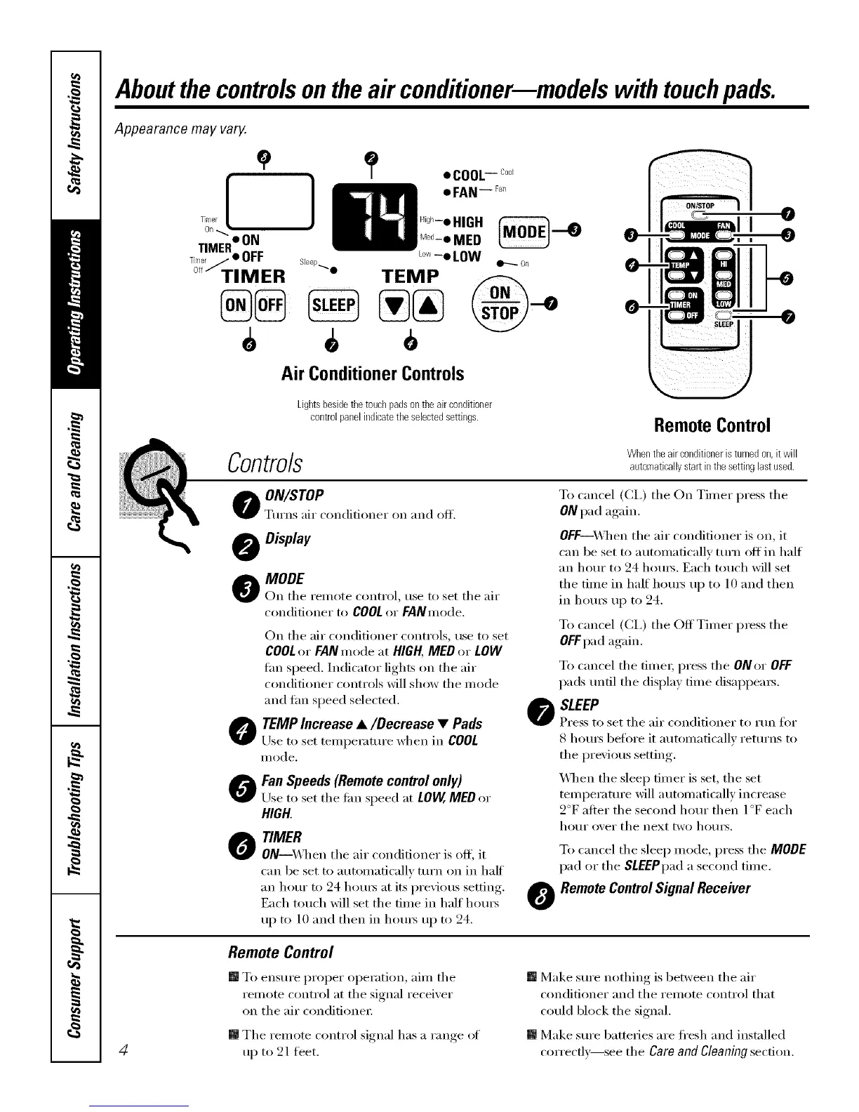 Aboutthecontrolsontheair conditioner--modelswith touchpads.