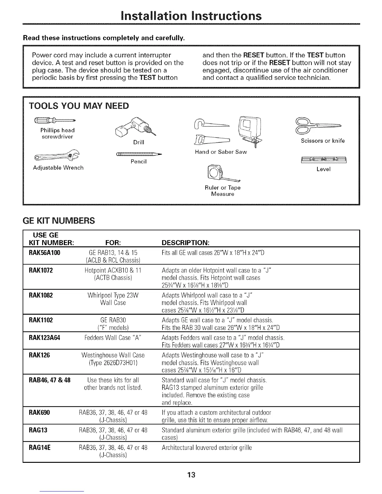 RAK56A100 GERAB13,14 & 15 Fitsall GEwall cases26"W x 18"Hx 24"D