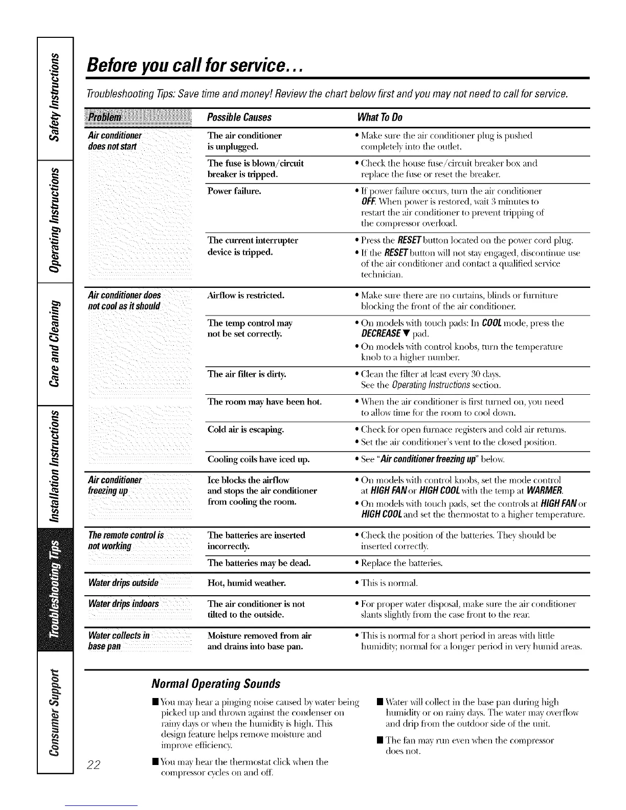 Troubleshooting -tips: Save time and money! Review the chart below first and you may not need to call for service.